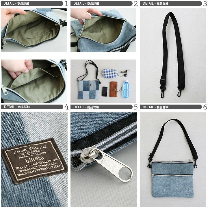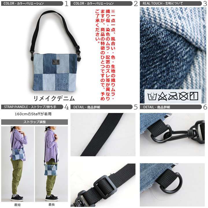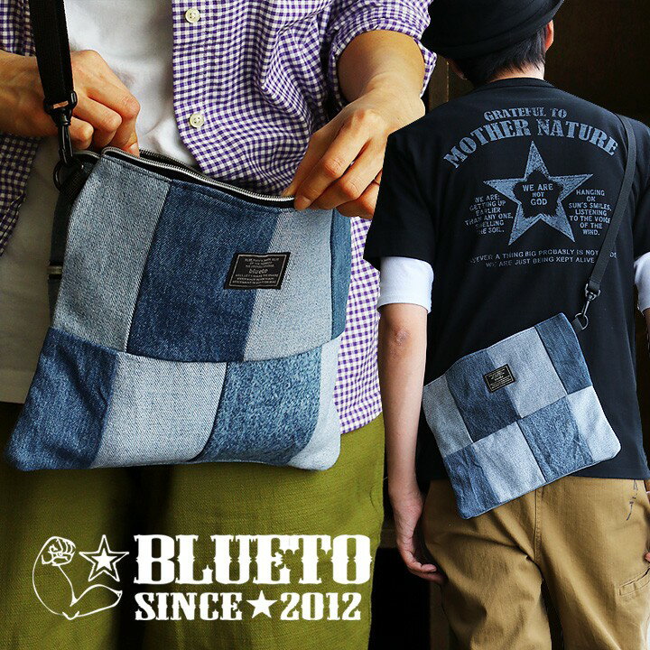 バッグ ショルダー サコッシュ 2WAY 『リメイク パッチワーク ユーズド デニム』 Dカン付き 綿100% メンズ レディース 鞄 40代 50代 | ショルダーバッグ バック カバン ショルダーバック サコッシュバッグ【全国一律送料330円】 BLUETO [ブルート]