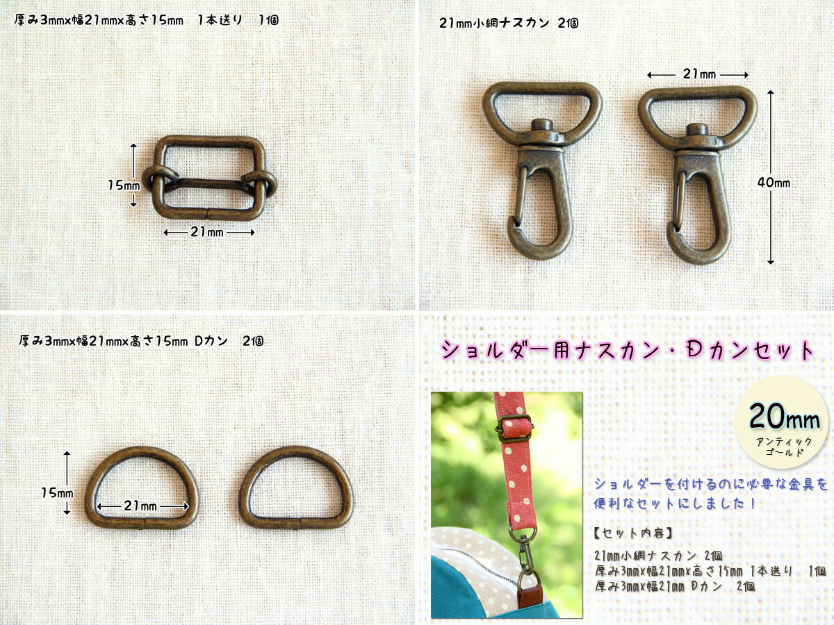 【ショルダー用ナスカン・Dカンセット】 20mm