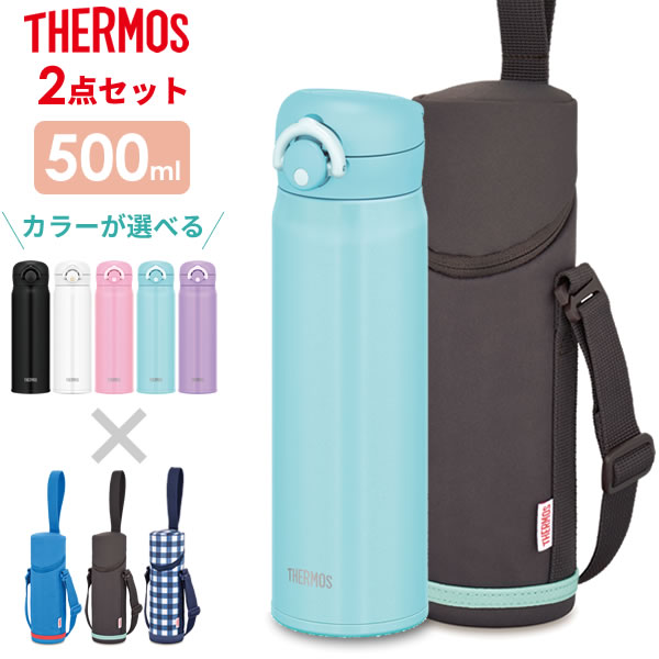 サーモス 水筒 2点セット 真空断熱ケータイマグ + 肩ひも付きボトルカバー 500ml JNR-501 / APG-500